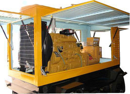 灵宝柴油发电机组/移动柴油发电机组设计独具创新,机动性高、重心低、制动安全、制造精良、外形美观。 灵宝拖车车架采用槽梁焊接成框架结构,节点选择合理、强度高、刚性好;同时装有钢板弹簧悬架结构;拖车采用高度可调节插销式牵引架,适用于各种高度牵引车;采用圆形钢管焊接直通式车轴,结构紧凑,安全可靠;车架四角设有机械式支撑装置,配备惯性行车制动、驻车制动和脱离应急制动,确保机组在各种状况下的安全;车架前端设有支撑轮,具备承受机组垂直载荷的功能的同时还具备导向功能;整车配备转向和刹车指示灯,同时装有尾灯标准插头